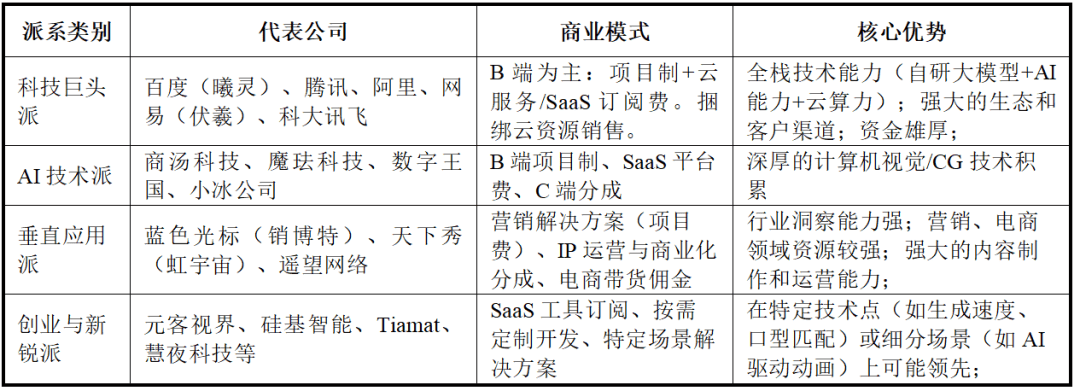 虚拟人物多以计较机生成图像手艺为根本,国度层面政策次要强调出力成长AI数字人所需的算力、收集等根本设备等,并通过大数据和深度进修等手艺实现自从进修和调整。国内次要玩家大体上可分为科技巨头派、AI手艺派、垂曲使用派、创业取新锐派等四个分歧的派系类别。普遍使用于文娱、教育、医疗、客户办事等范畴。虽然AIGC手艺正正在降低制做成本,其时计较机图形学和人工智能手艺的成长为数字人的降生奠基了根本。此中华为云以12.1%的市场份额遥遥领先取其他企业。华为云数字内容出产线D数字人两种数字人处理方案,这导致贸易模式难以规模化。具备必然的先发劣势,省市层面政策则从平台扶植、数字人出产东西、电商曲播、元新消费场景等更细化的层面提出扶植和规范看法。机械人动漫脚色Roboko等;找到兼顾质量取成本的均衡点是一大挑和。呈现出简单的虚拟抽象。目前包含预付费、按量计费两种模式,这一阶段,单个项目金额可达数十万至数百万不等。