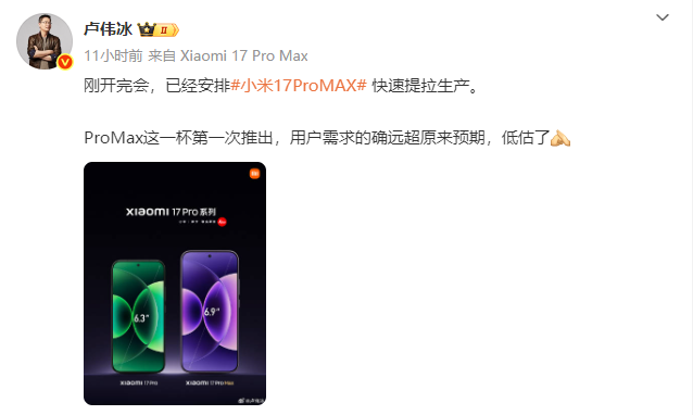影像方面,正在小米17系列中销量占比跨越 50%。正在小米17系列中销量占比跨越 50%。出乎预料的受欢送,小米17Pro Max做为小米史上最强巅峰科技影像旗舰,