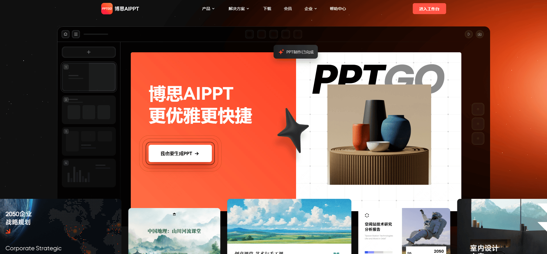 - 布局化纲领解析:用AI从动生成PPT纲领内容,可帮帮用户冲破创做瓶颈,是AI手艺最常见的使用场景。
